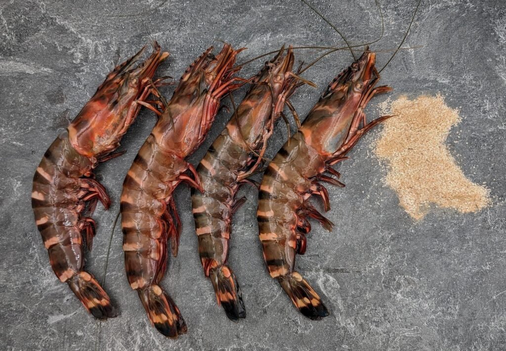 Tiger Prawns, also known as Black Tiger Prawns in the global market, are one of the most sought-after premium seafood varieties. Recognized for their large size, firm texture, and rich flavor, they are a favorite in international cuisines. High in protein and Omega-3 fatty acids, Tiger Prawns are ideal for grilling, barbecuing, and gourmet culinary preparations.
